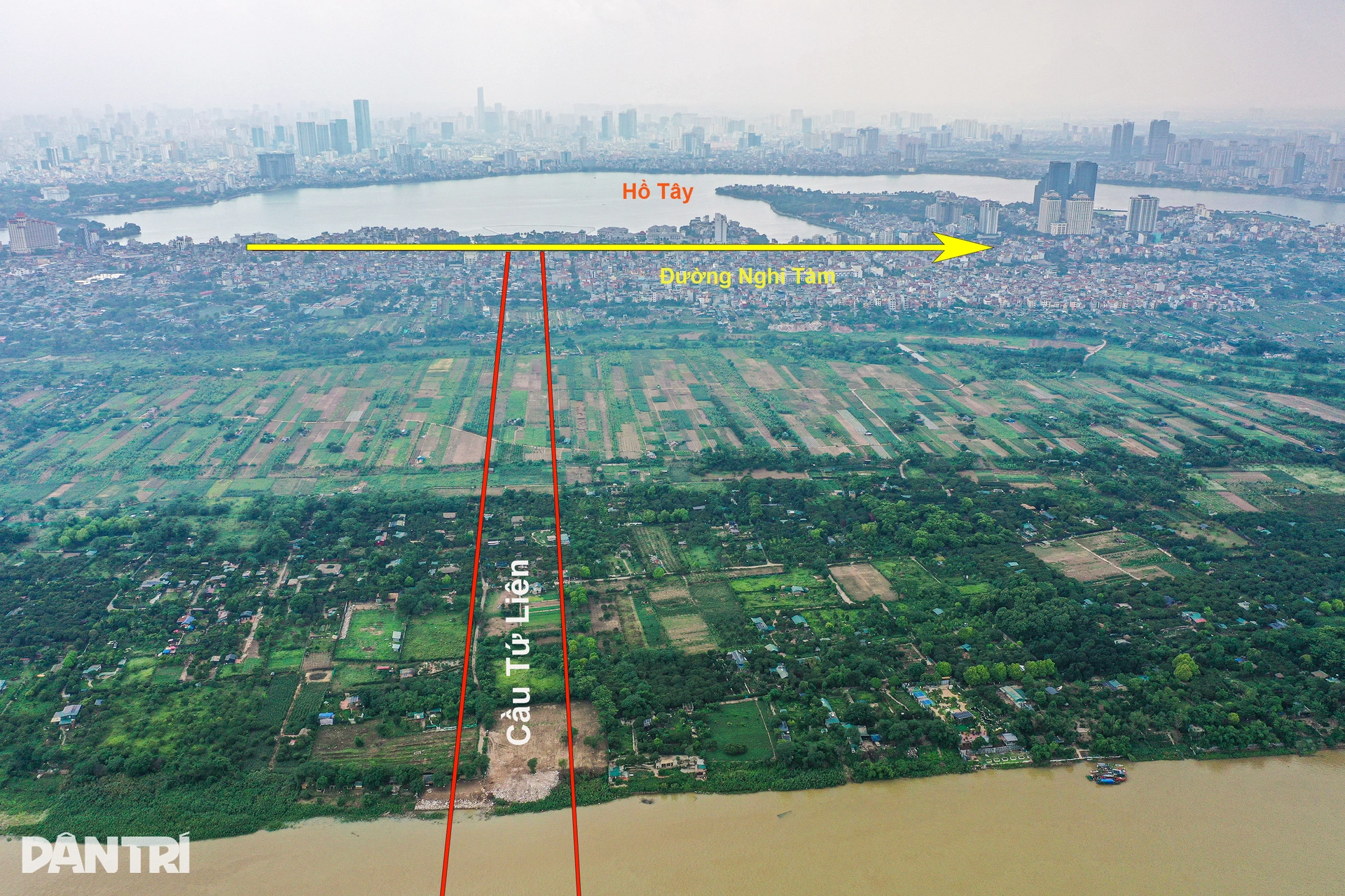 Tại phía quận Tây Hồ, đường nối với khu vực cầu Tứ Liên hiện là khu dân cư và bãi trồng đào, quất, canh tác hoa màu.