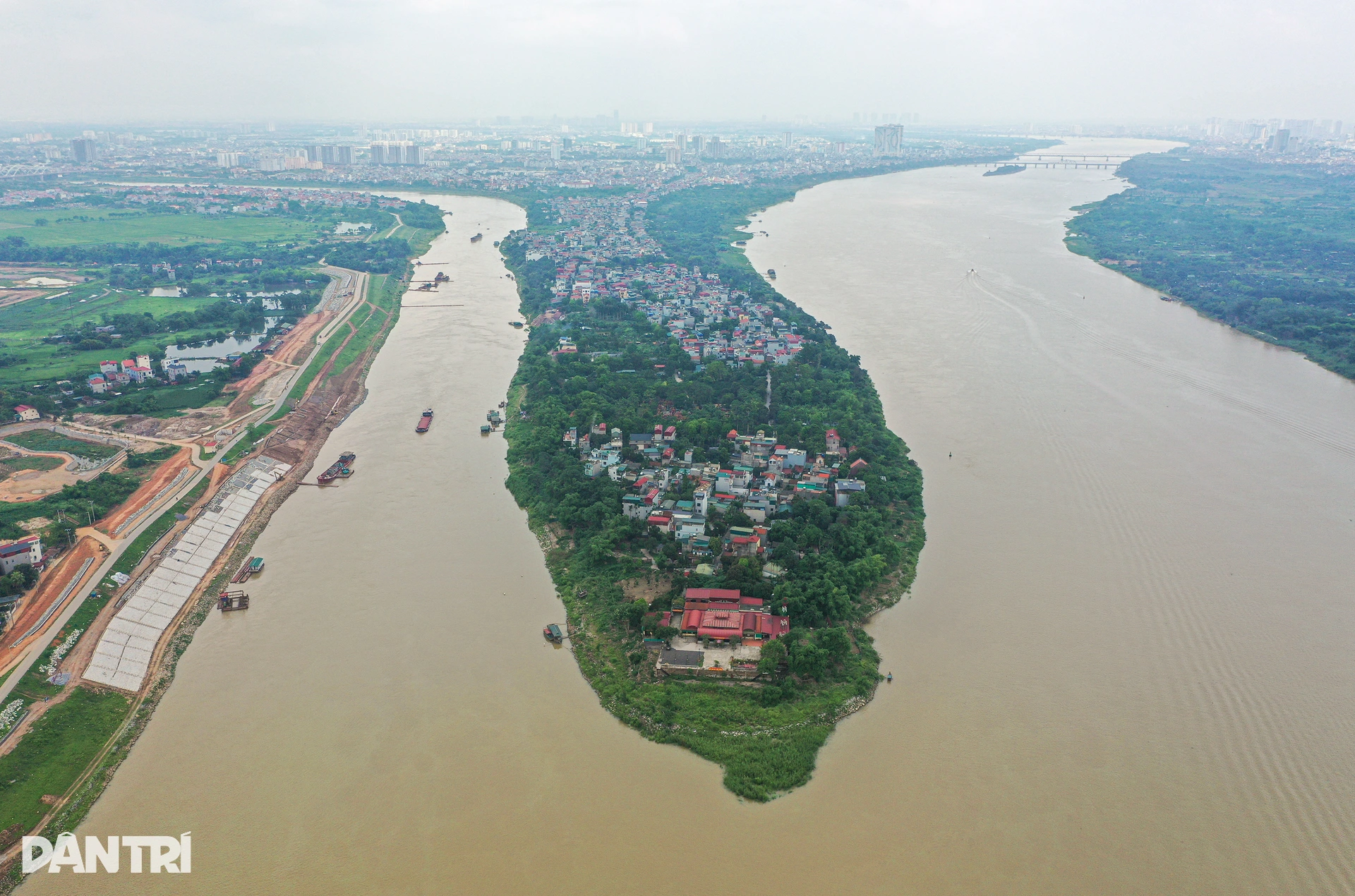 Toàn cảnh khu vực xây cầu Tứ Liên bắc qua sông Hồng và sông Đuống